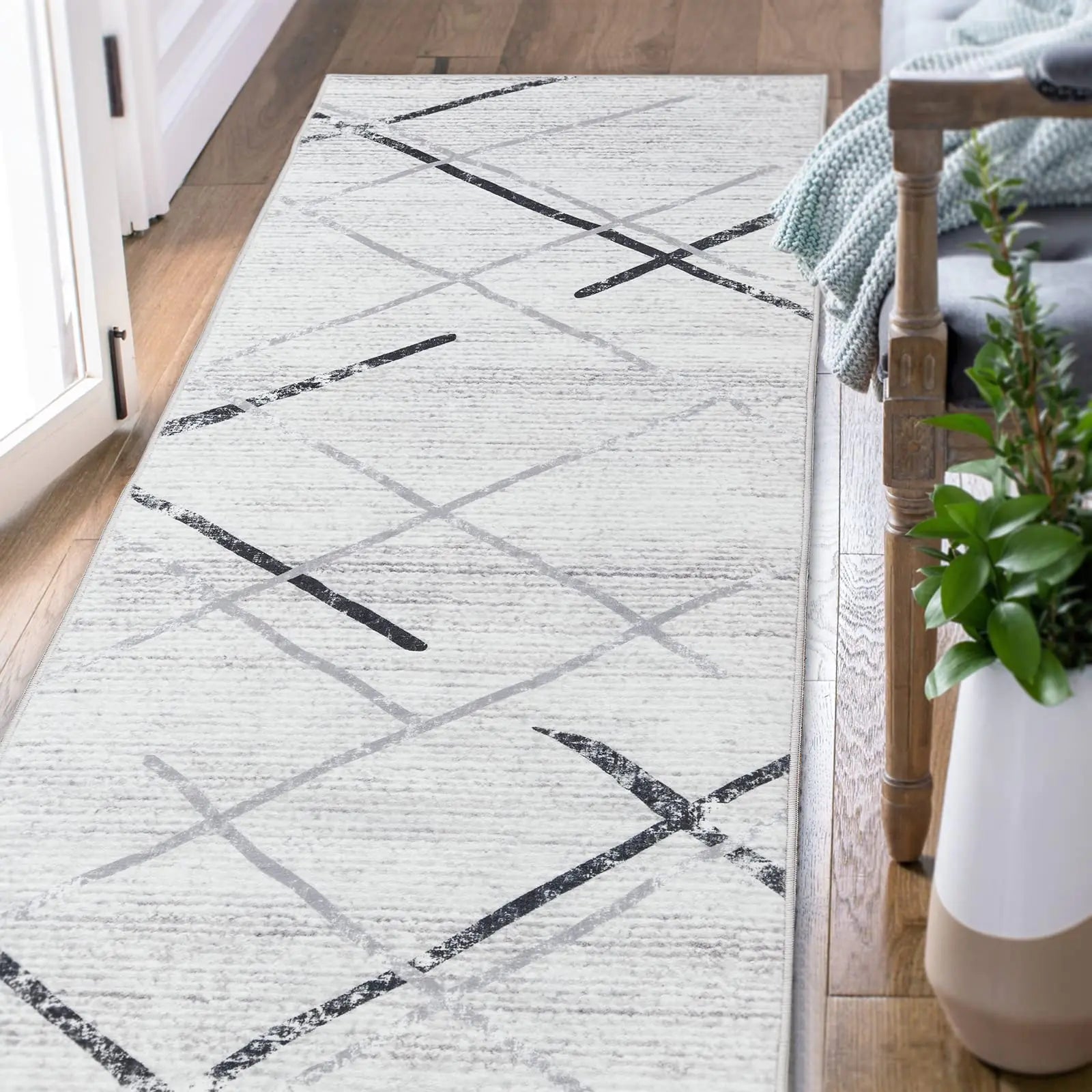 Bring a touch of modern elegance and practicality to your home with this versatile washable runner rug.
